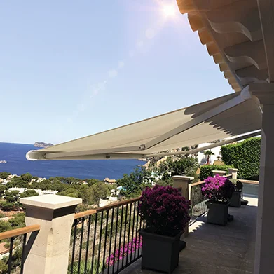 Mit dieser Gelenkarm-Markise schaffen Sie jederzeit ein angenehmes Schattenplätzchen. Dank der unsichtbaren Montage im Schacht fügt sie sich besonders dezent in die Gebäudefassade ein.